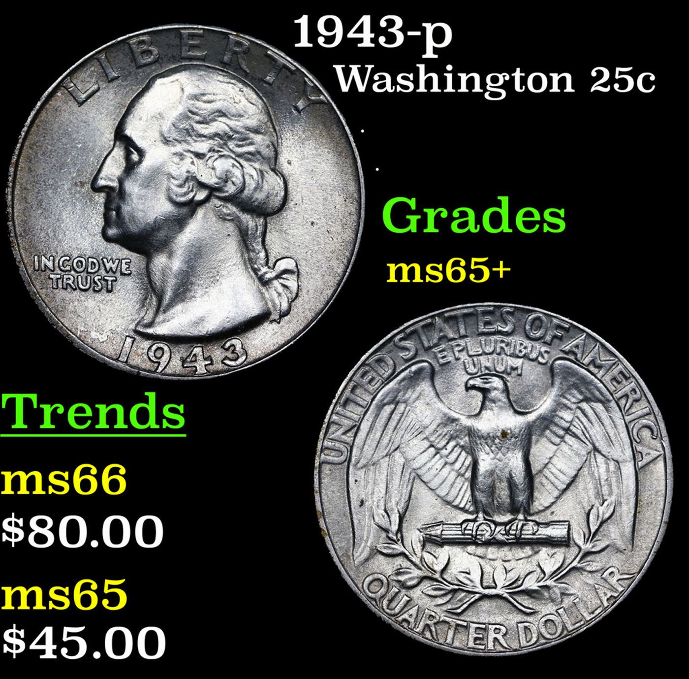 1943-p Washington Quarter 25c Grades GEM+ Unc.