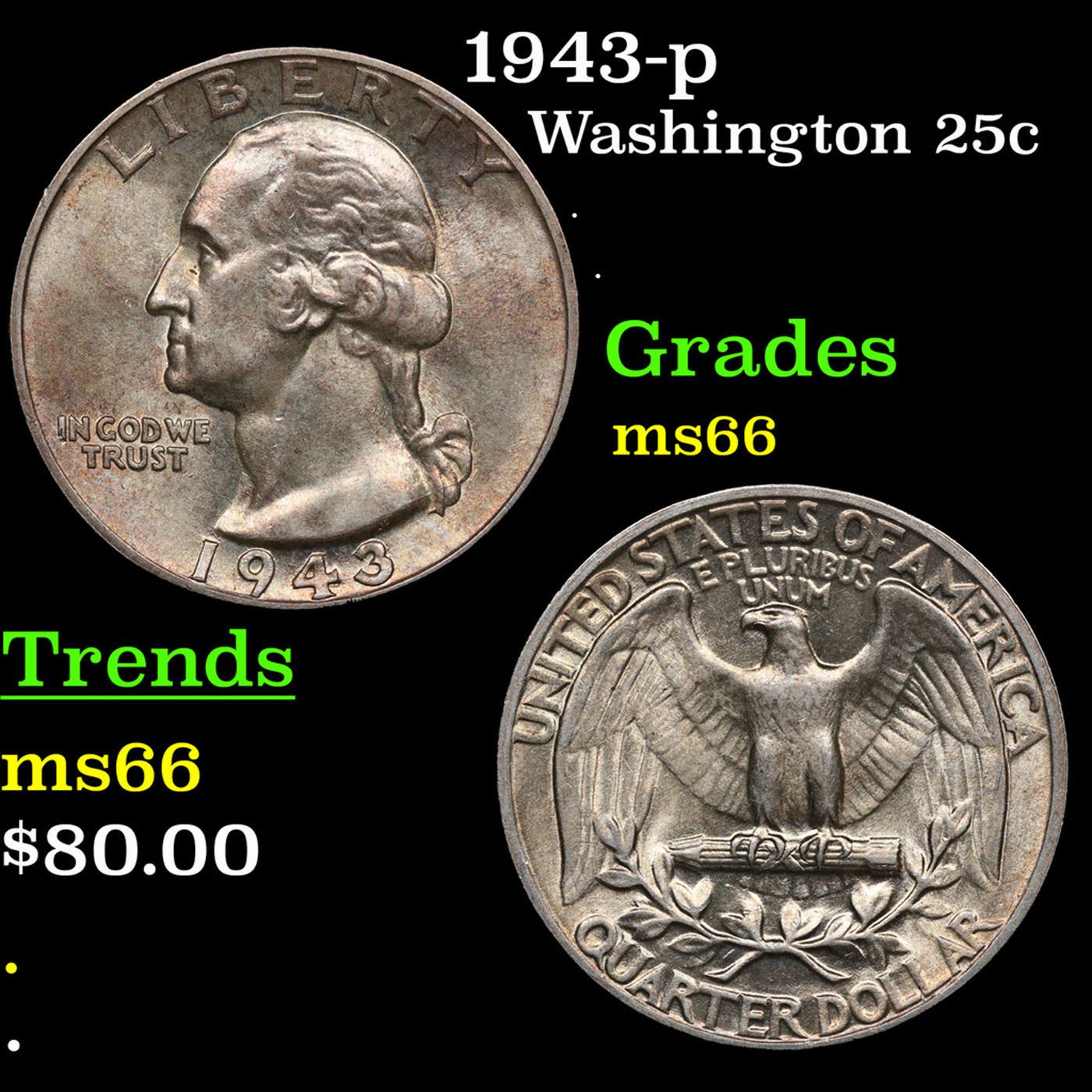 1943-p Washington Quarter 25c Grades GEM+ Unc.