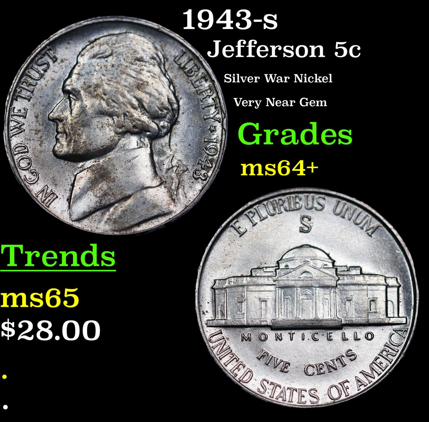 1943-s Jefferson Nickel 5c Grades Choice+ Unc.