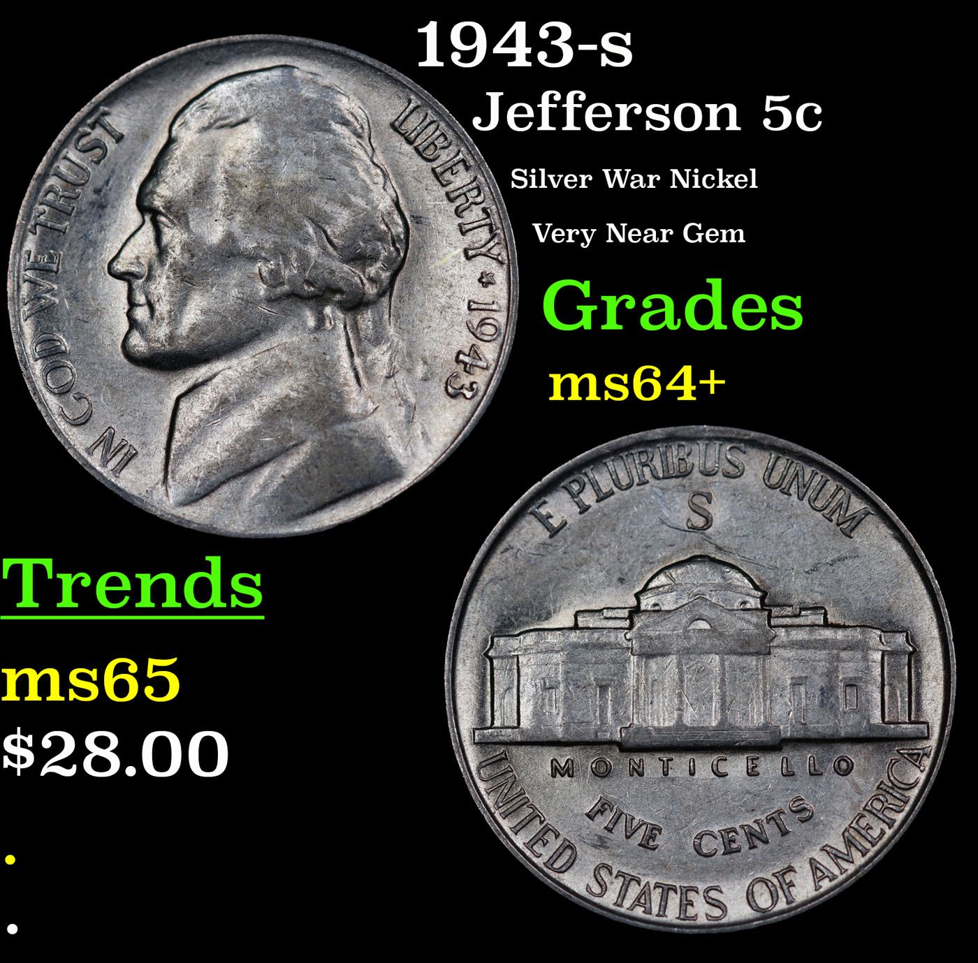 1943-s Jefferson Nickel 5c Grades Choice+ Unc.