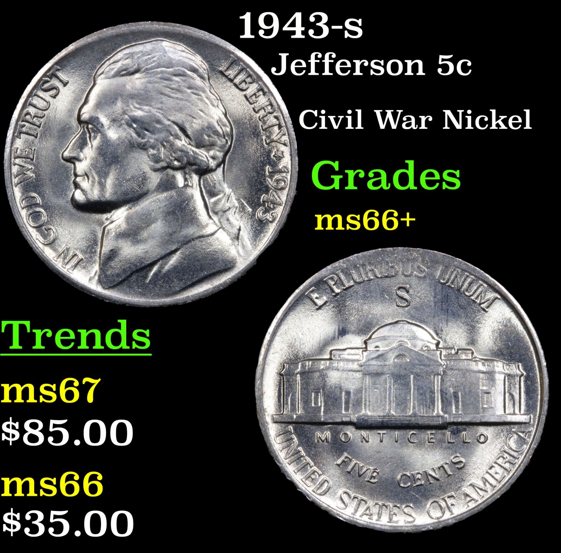1943-s Jefferson Nickel 5c Grades GEM++ Unc.