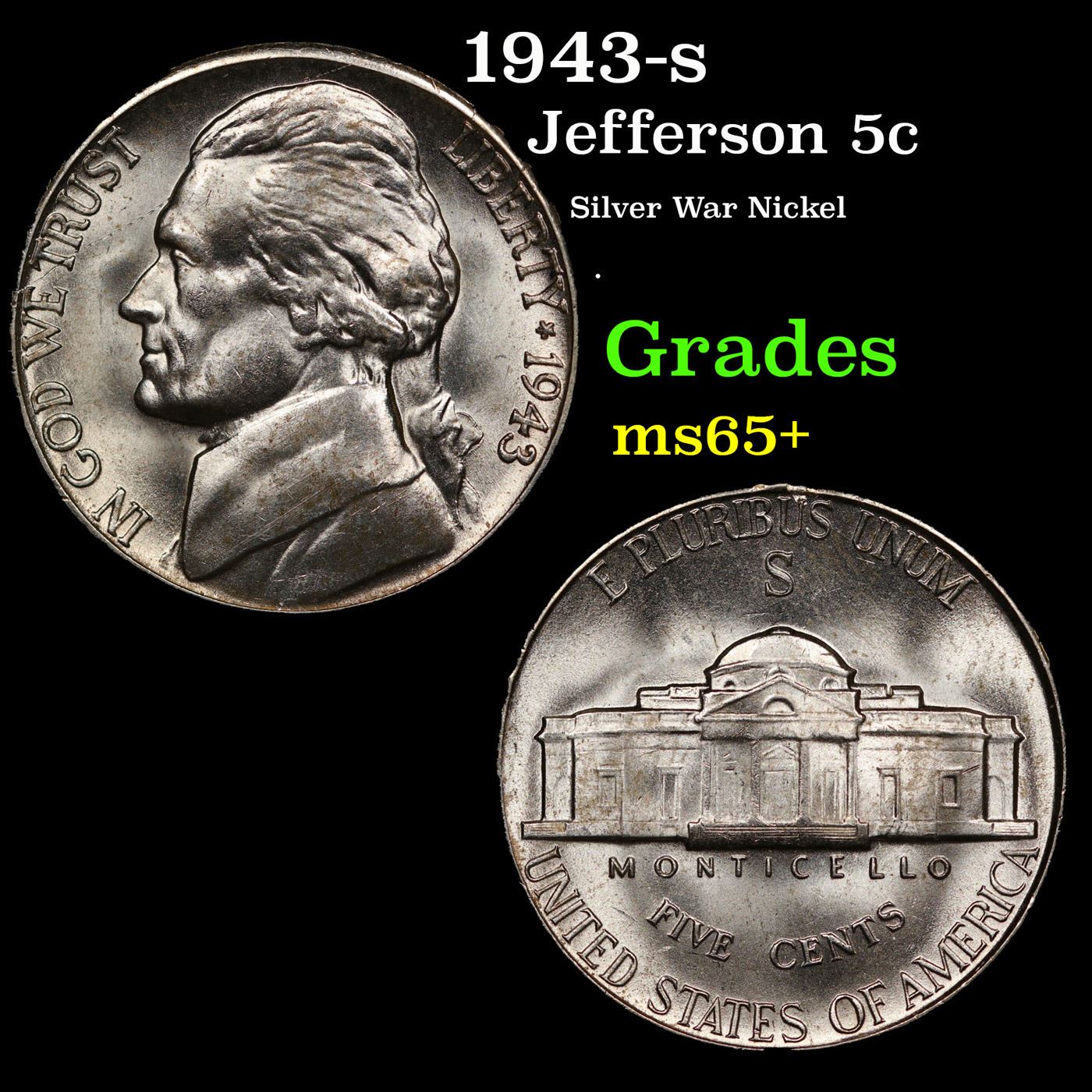 1943-s Jefferson Nickel 5c Grades GEM+ Unc