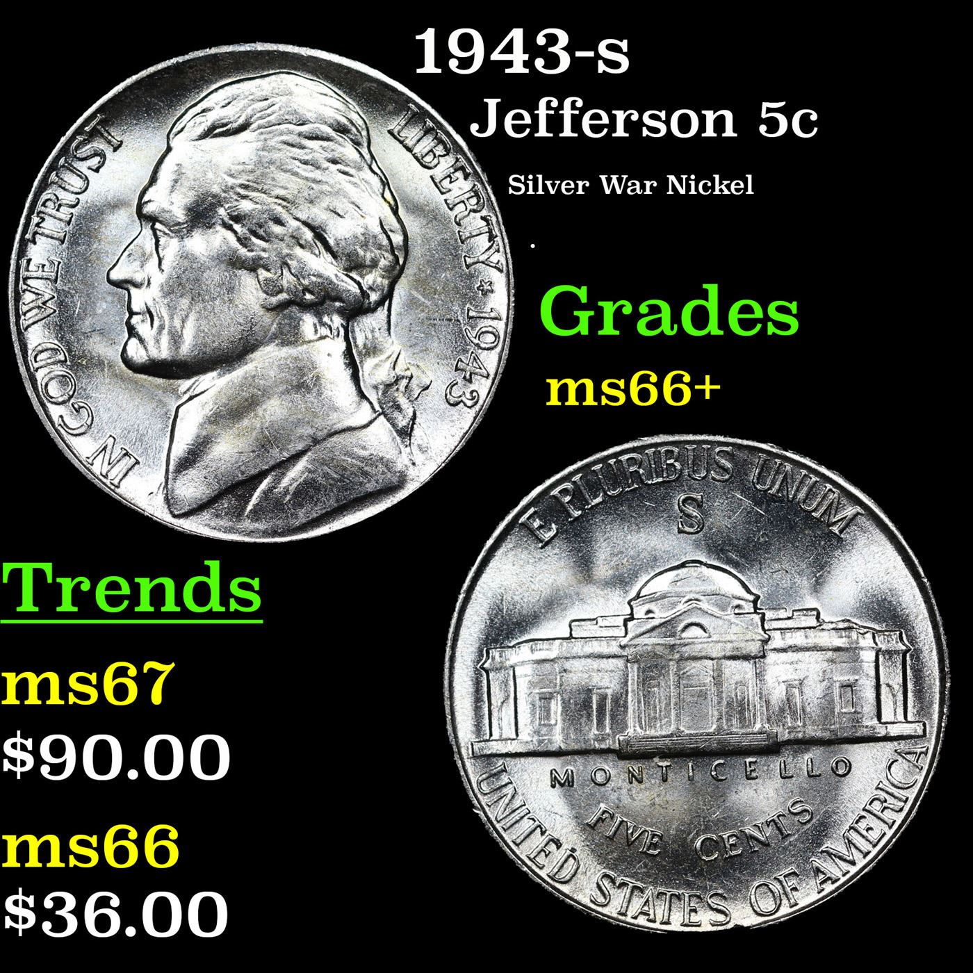 1943-s Jefferson Nickel 5c Grades GEM++ Unc.