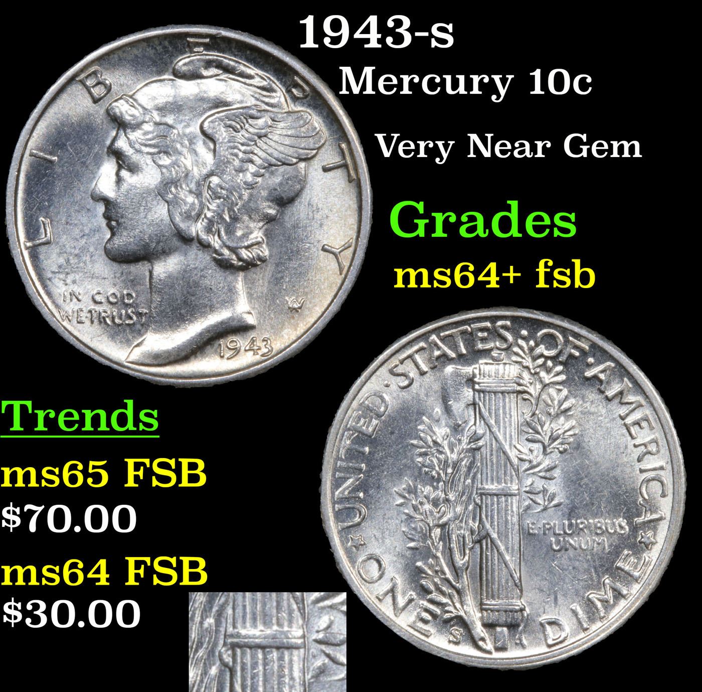 1943-s Mercury Dime 10c Grades Choice Unc+ FSB.
