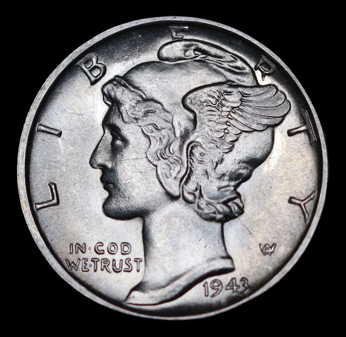 1943-s Mercury Dime 10c Grades GEM++ FSB.