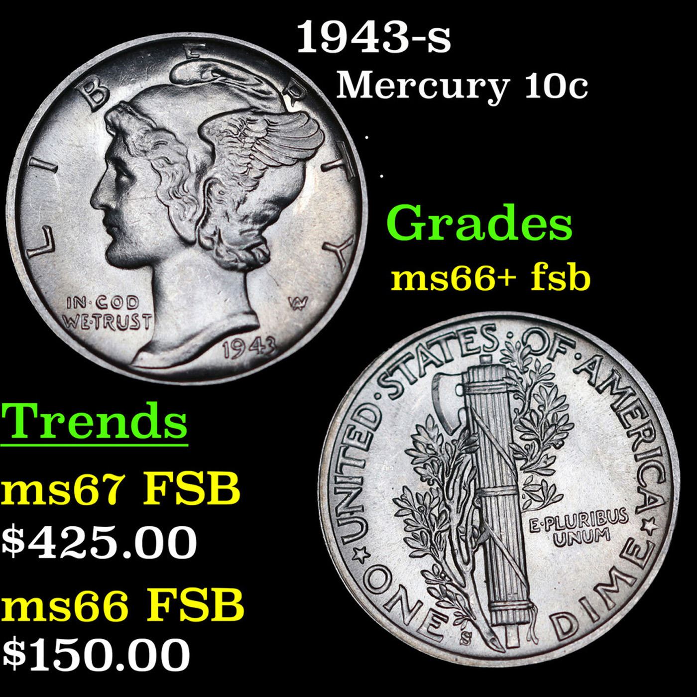 1943-s Mercury Dime 10c Grades GEM++ FSB.