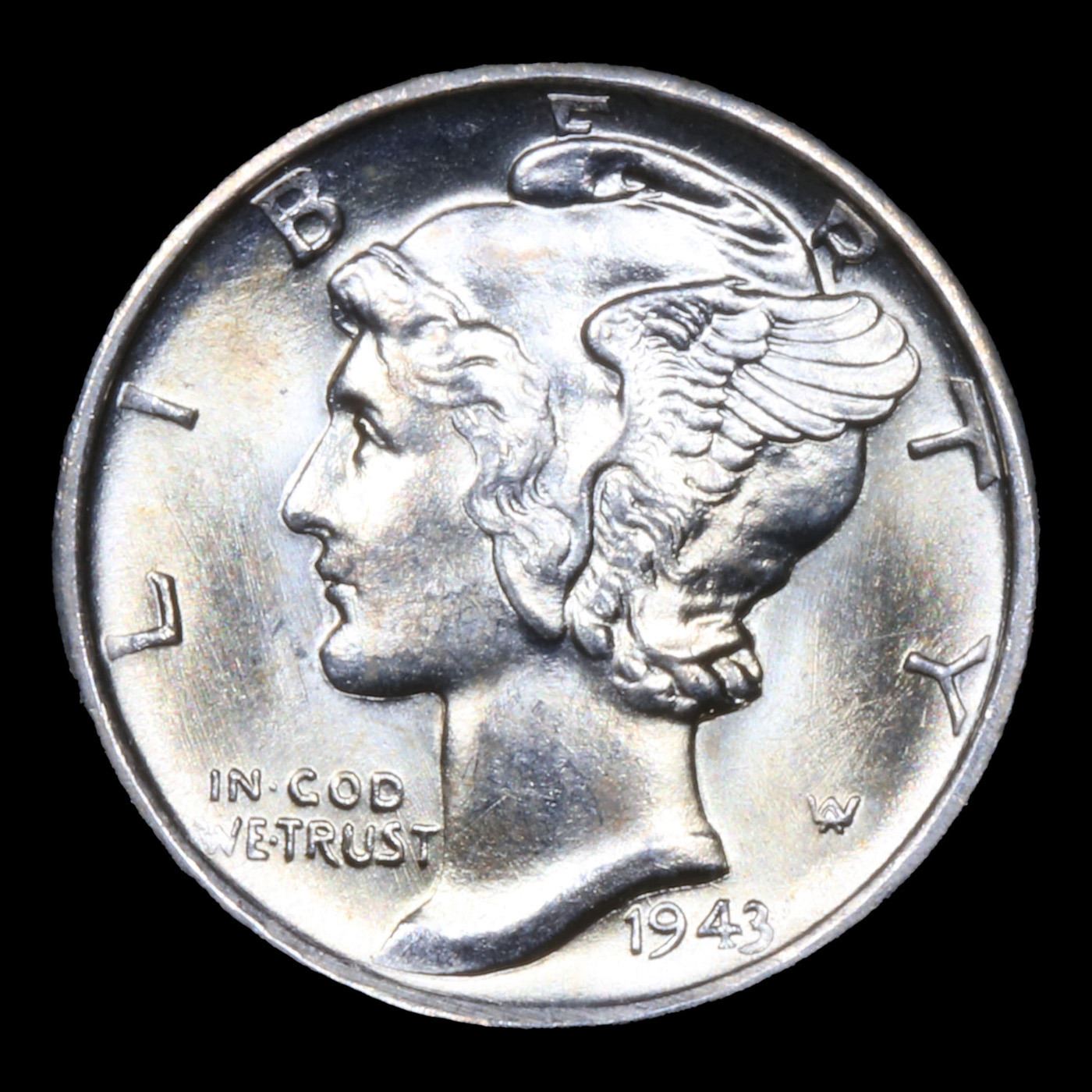 1943-s Mercury Dime 10c Grades GEM+ FSB.
