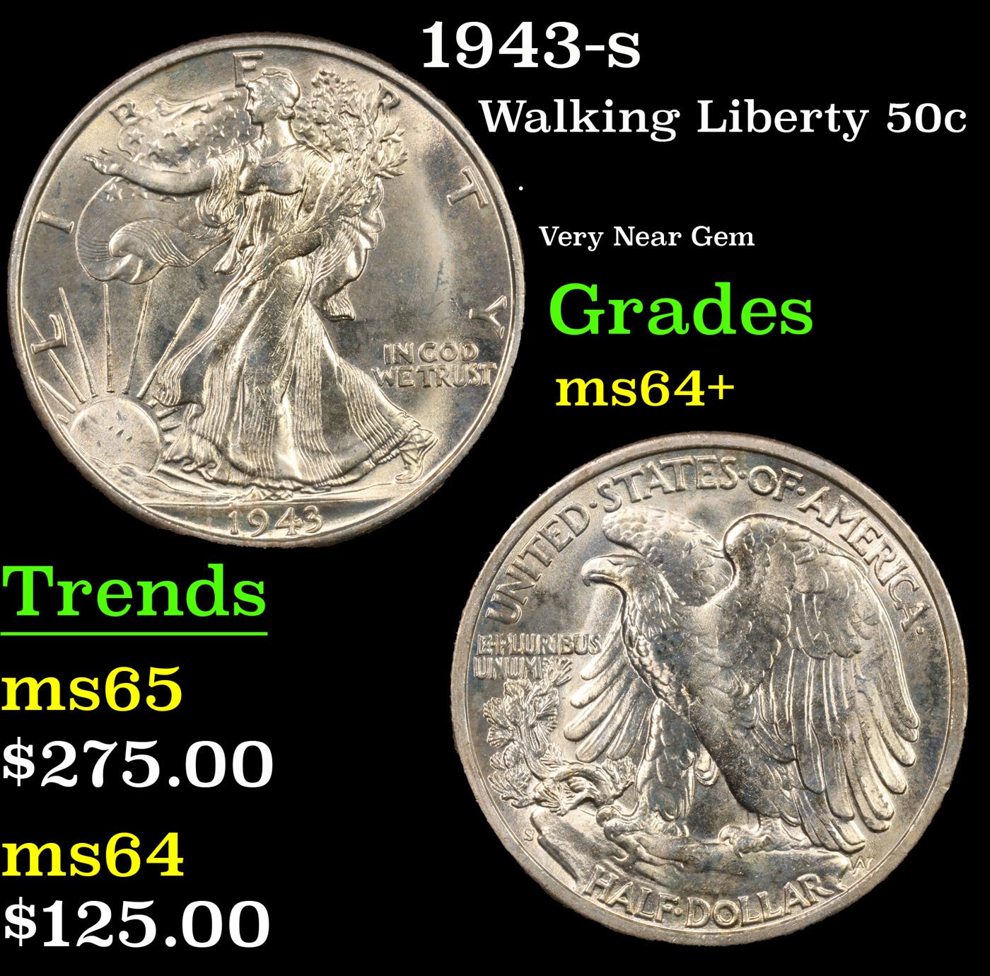 1943-s Walking Liberty Half Dollar 50c Grades Choice+ Unc.
