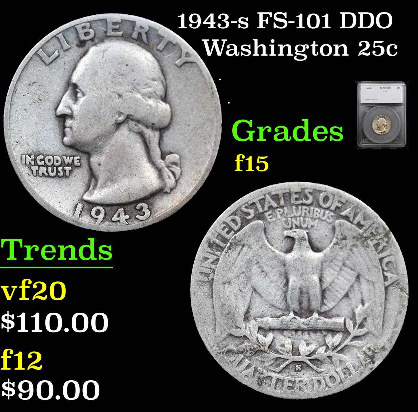 1943-s FS-101 DDO Washington Quarter 25c Graded f15 By SEGS.