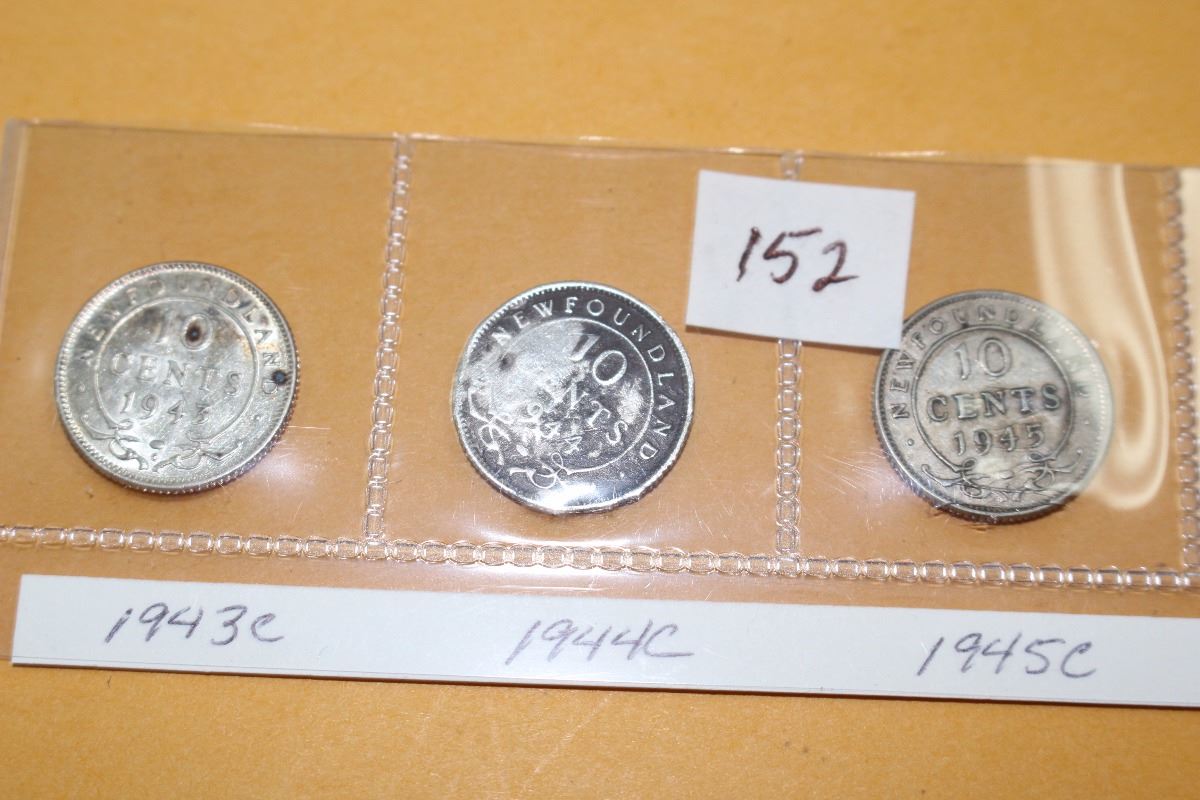 1943C; 1944C; 1945C Nfld. Small Ten Cent Coins
