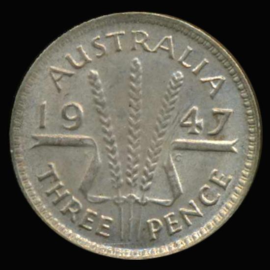 1943D Australia 3 Pence MS63+ RARE Doubled Reverse Initials DENVER MINTED (COI-6811)