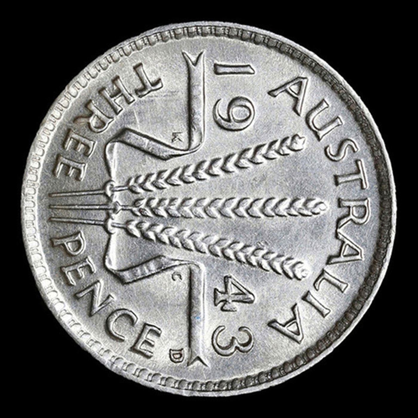 1943D Australia Threepence 3 Pence KM-37 Grades Select+ Unc.