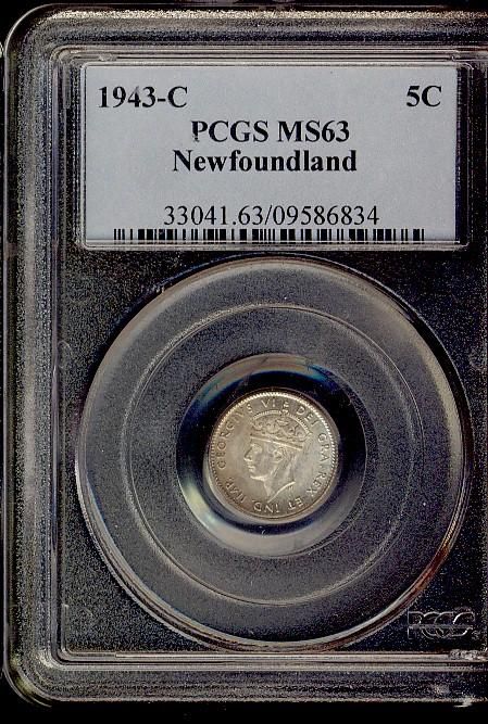 1943c NFLD 5¢ PCGS MS63