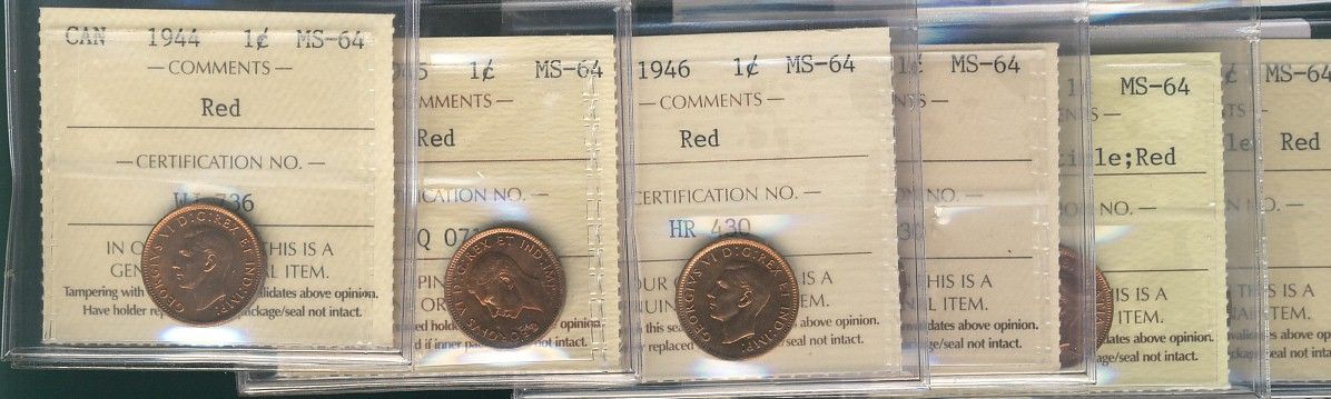 1944 1¢, 1945, 1946, 1947, 1948 a Off & A To ICCS MS64RD. Lot of 6 coins.