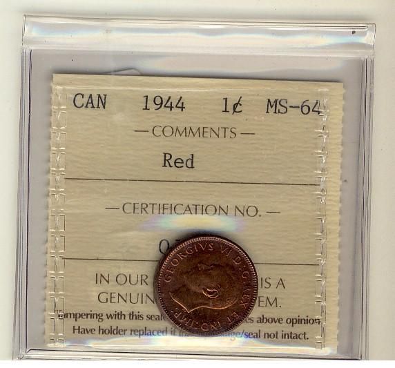 1944 1¢ ICCS MS64 Red.