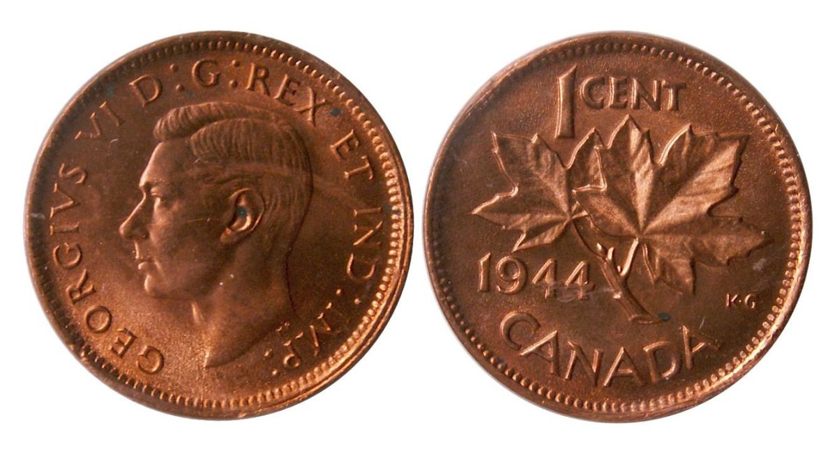 1944 1¢ ICCS MS64RD. Tough example in this grade. Coin is Red and not the typical wine red colour.