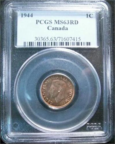 1944 1¢ PCGS MS63 RED. A near full red example.