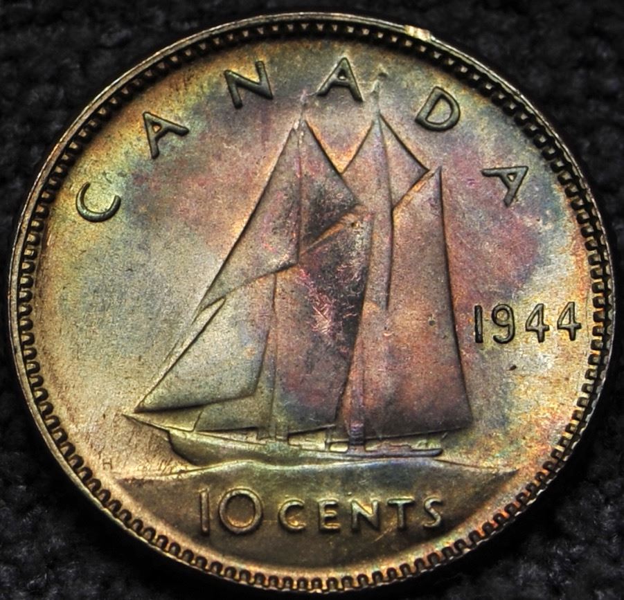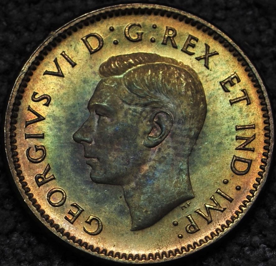Pretty issue with razor lustre under gem tones of blue and orange evenly covering both obv and rev.