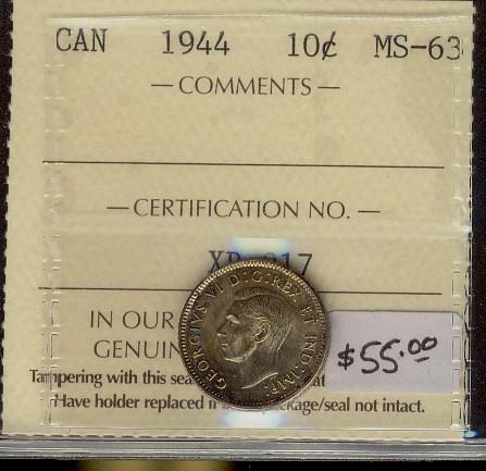 1944 10¢ ICCS MS63