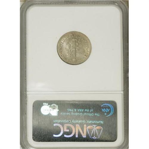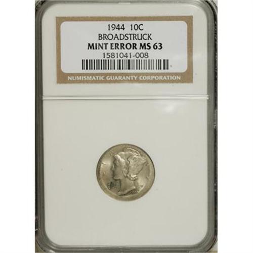 <B>1944 10C Mercury Dime--Broadstruck--MS63 NGC.</B></I> <BR><BR><B>Coin Engraver:</B> Adolph A. Weinman<BR><BR><b>Shipping:</b> Coins & Currency (<a target="_blank" href="http://www.heritageauctions.com/common/shipping.php">view shipping information</a>)