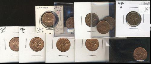 1944, 1945, 1947 ML, 1960, 1965 Type 1 (4), lot of 8 pieces. Grades vary from MS-62 red/brown to MS-64 red.