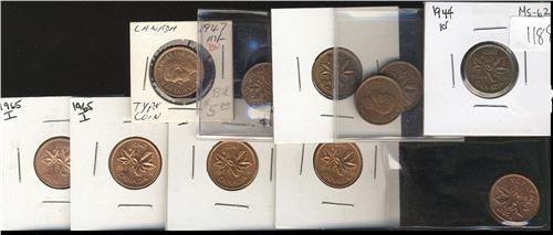 1944, 1945, 1947 ML, 1960, 1965 Type 1 (4), lot of 8 pieces. Grades vary from MS-62 red/brown to MS-64 red.