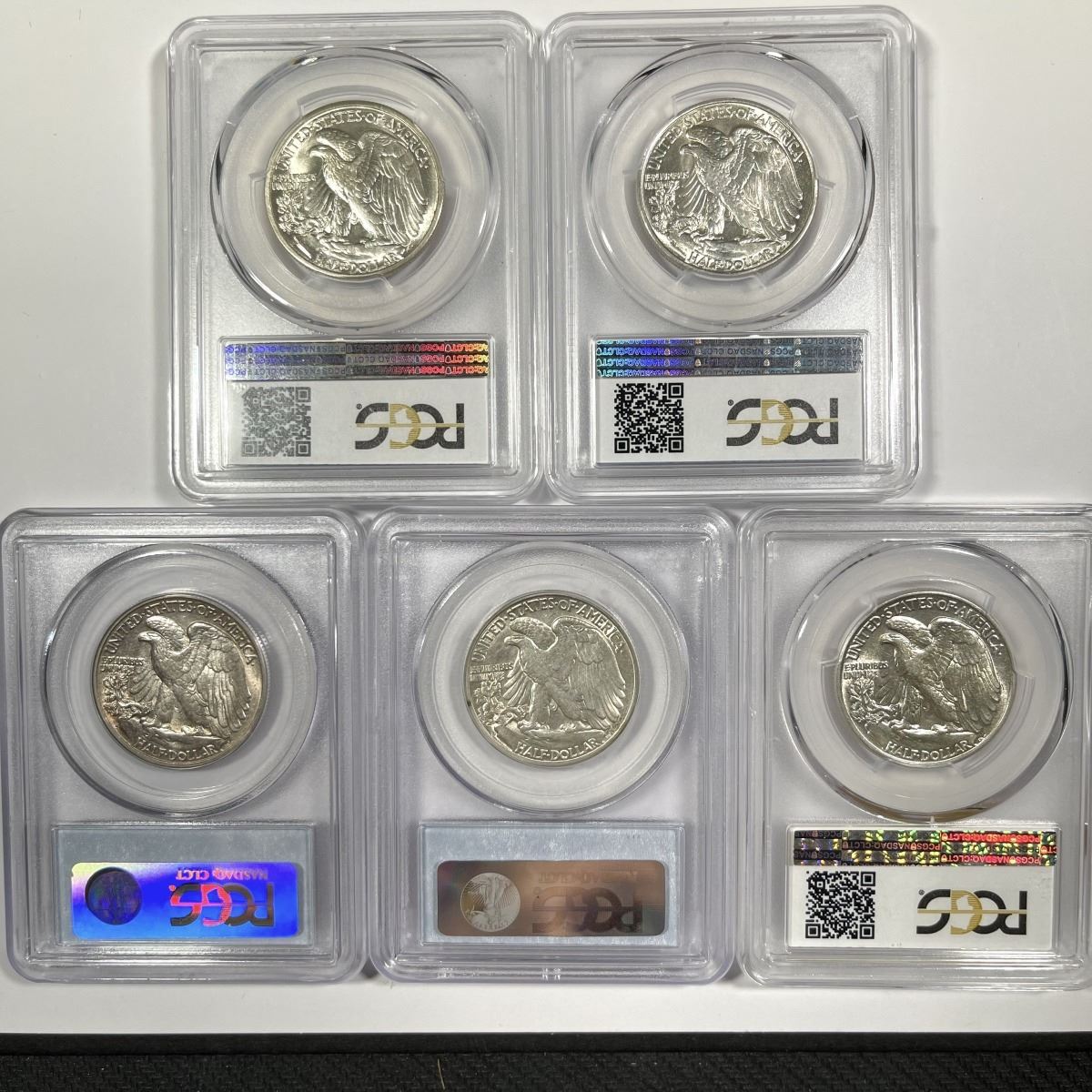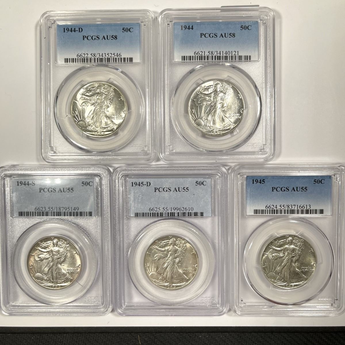 1944-1945 Set (5) Walking Liberty Half Dollar
