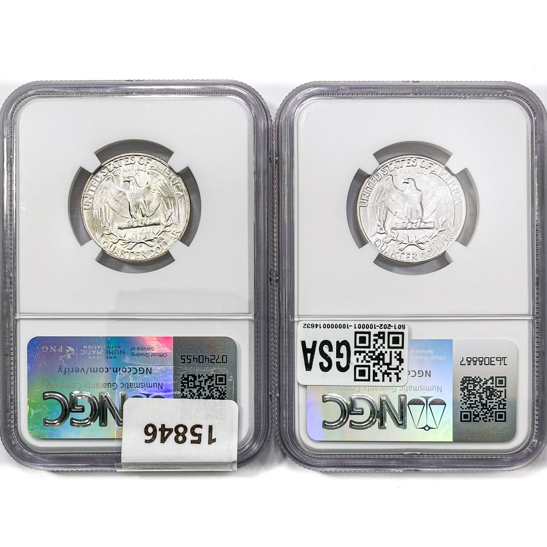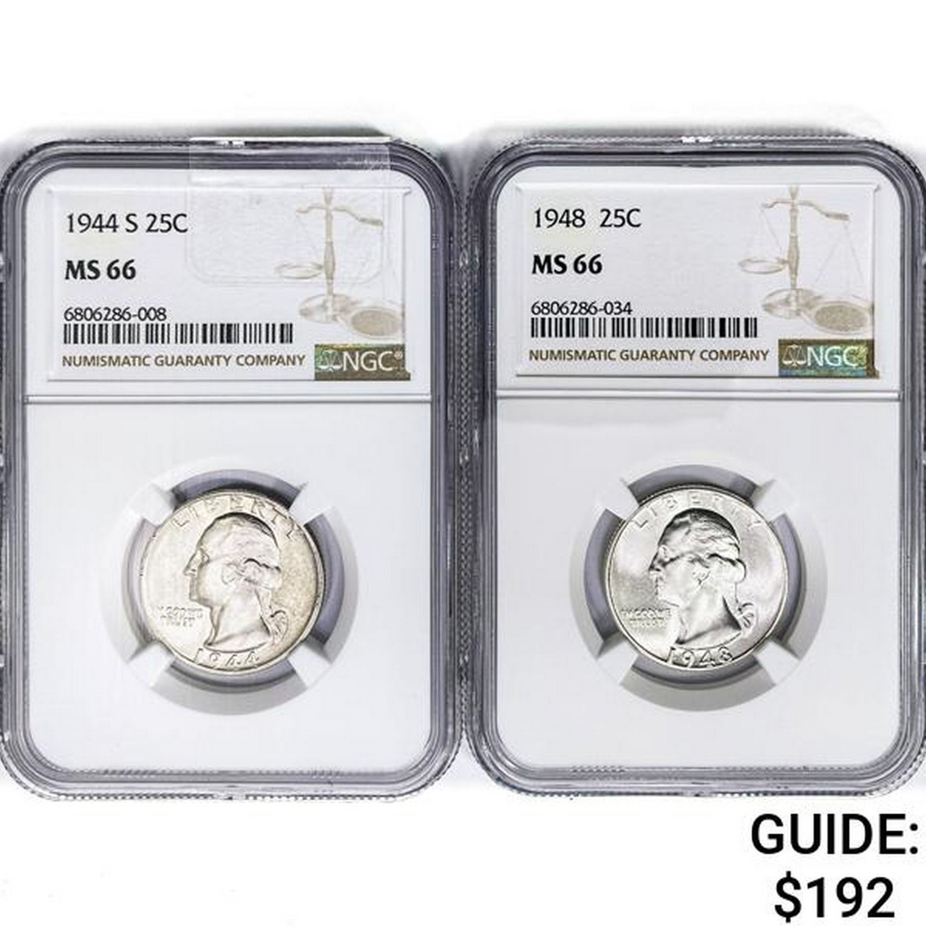 1944&1948 [2] Washington Silver Quarter NGC MS66