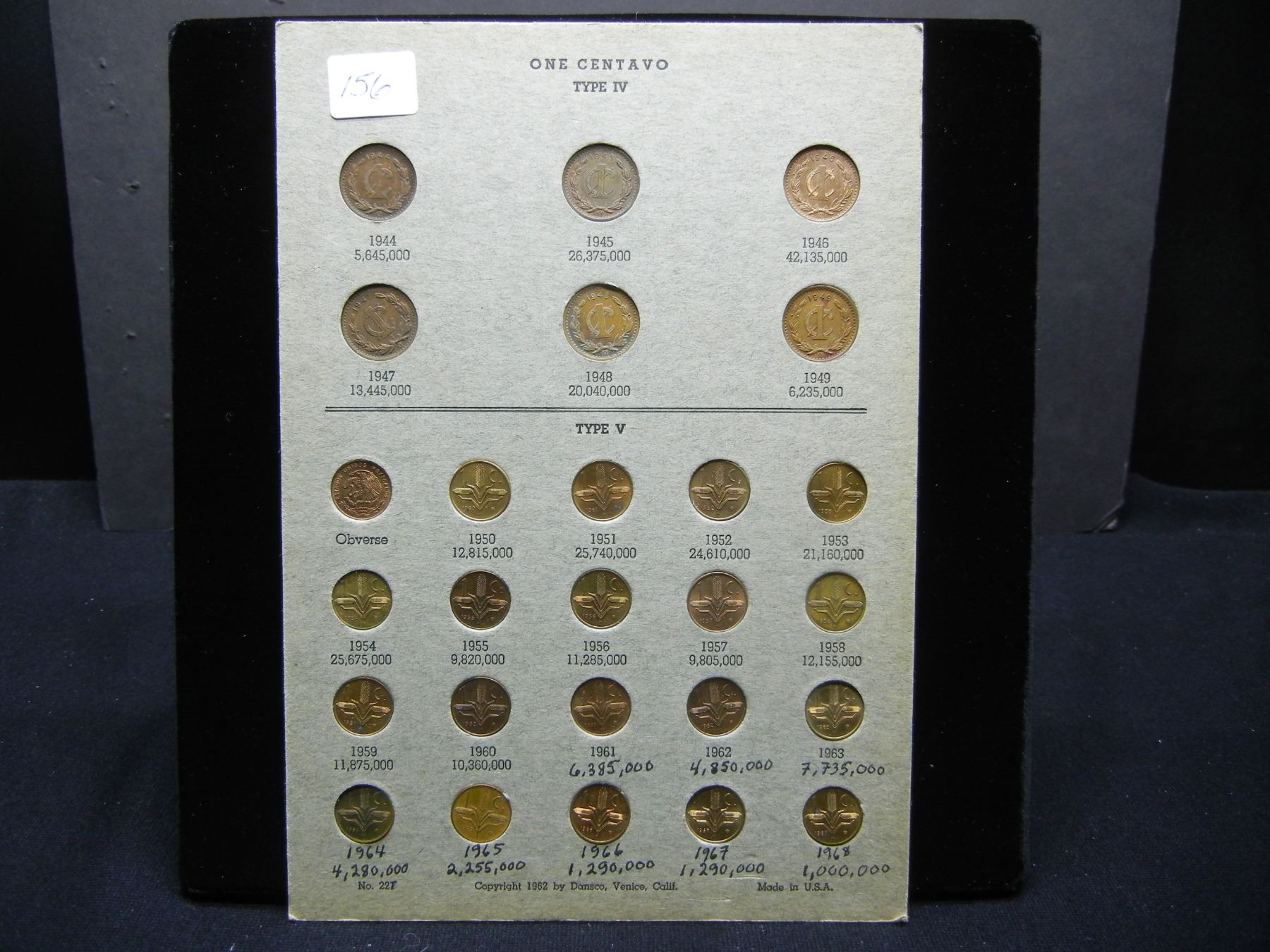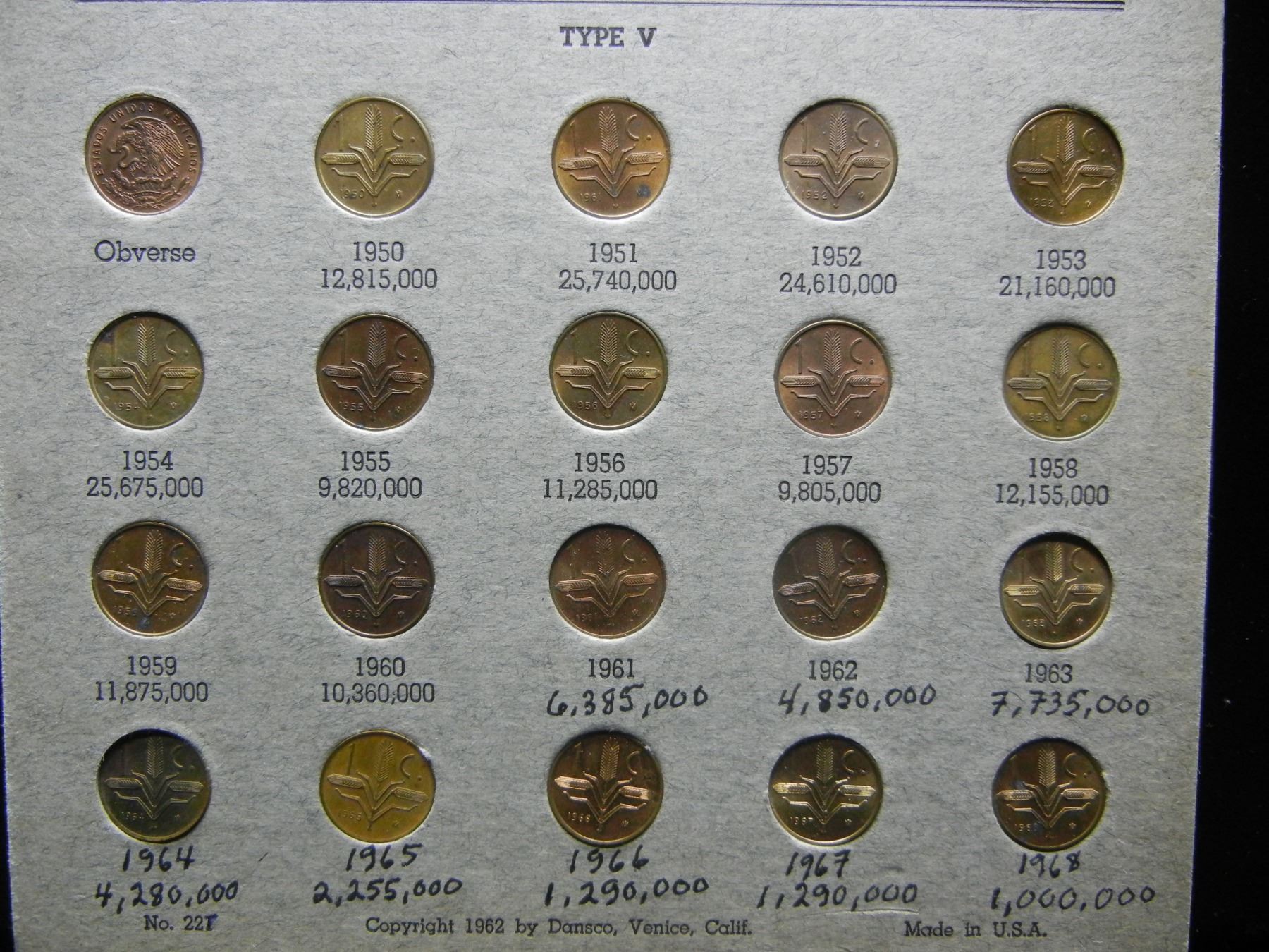1944-1968 Mexico Uno centavo set (26) Coins