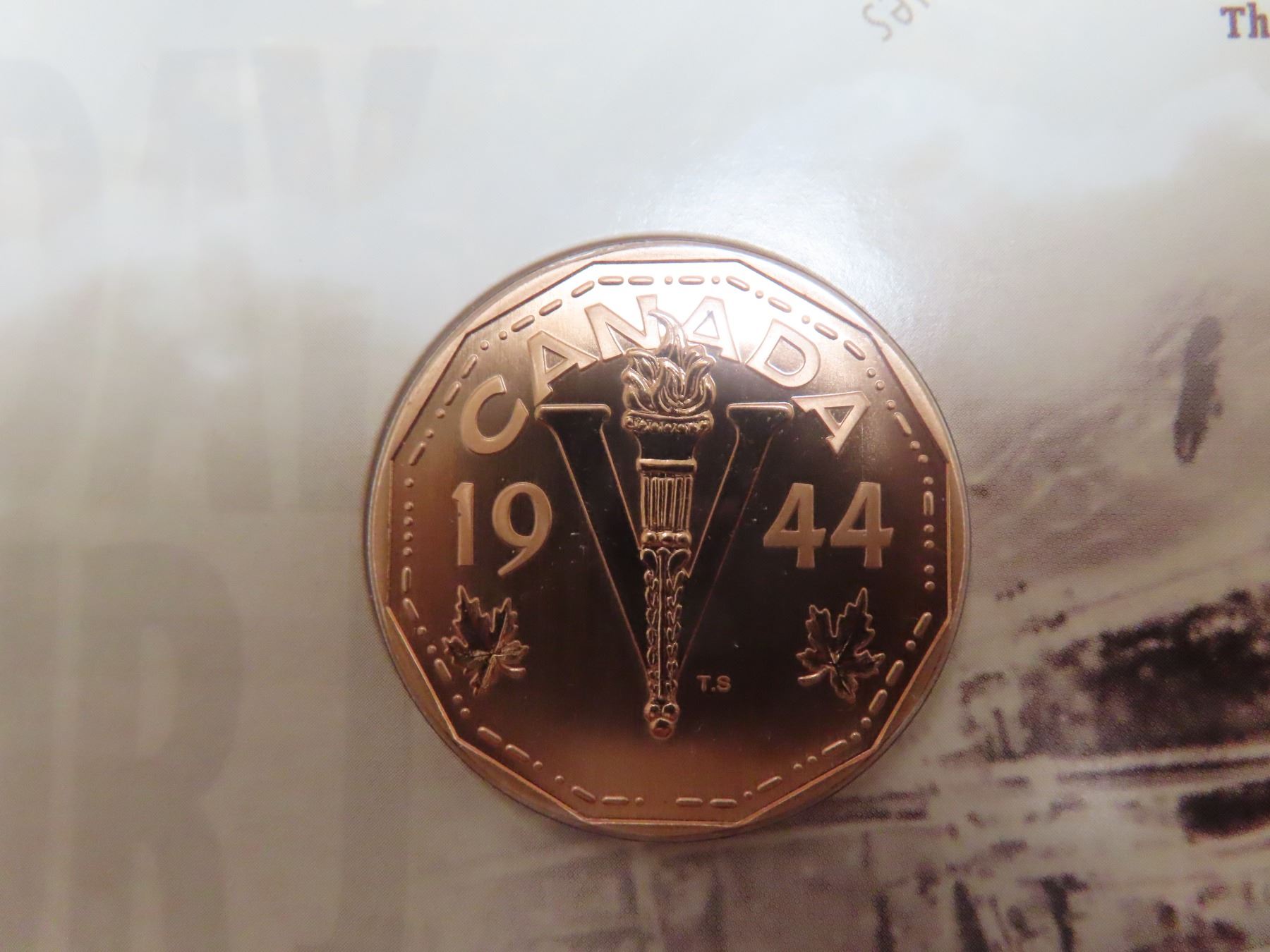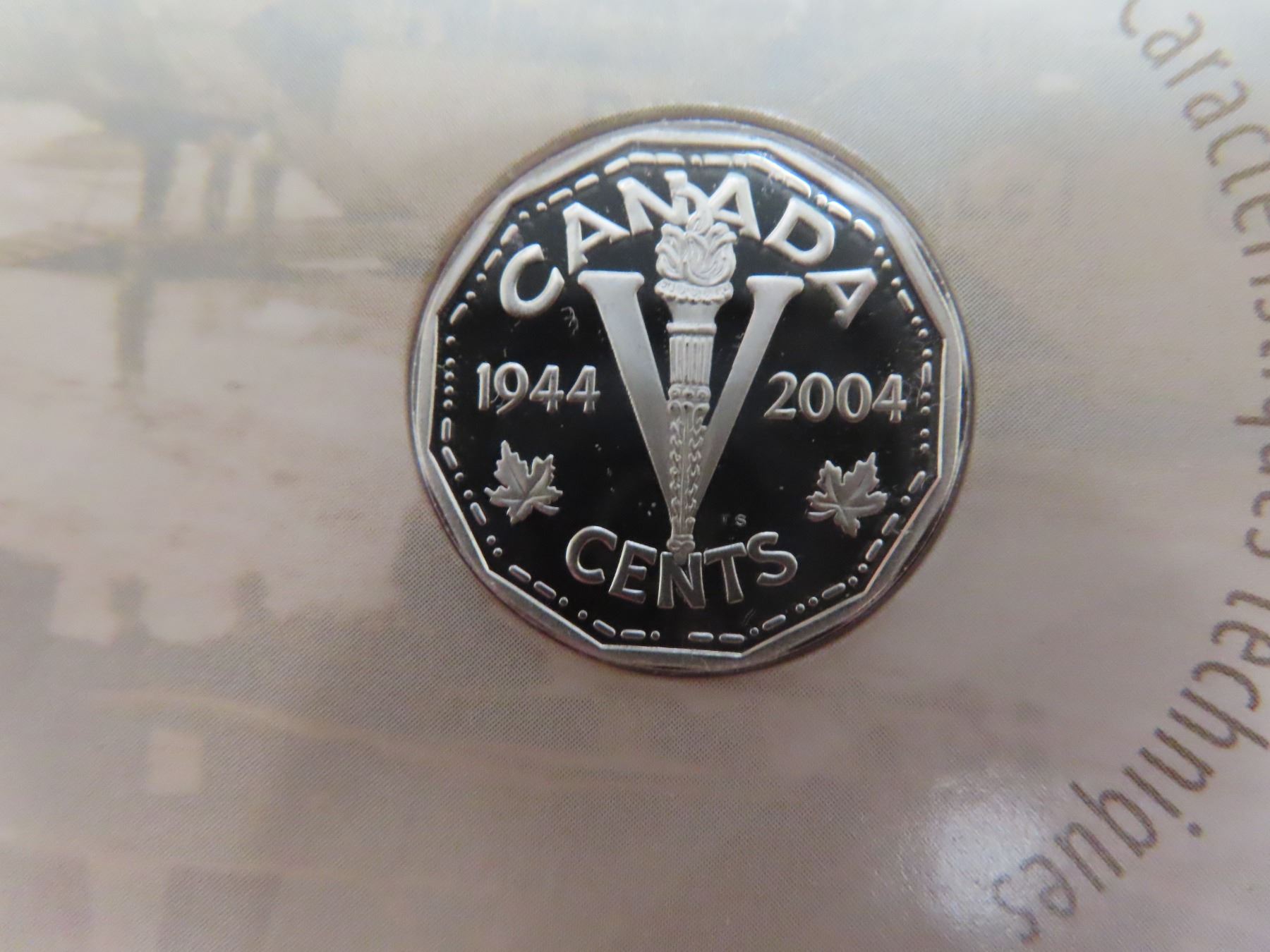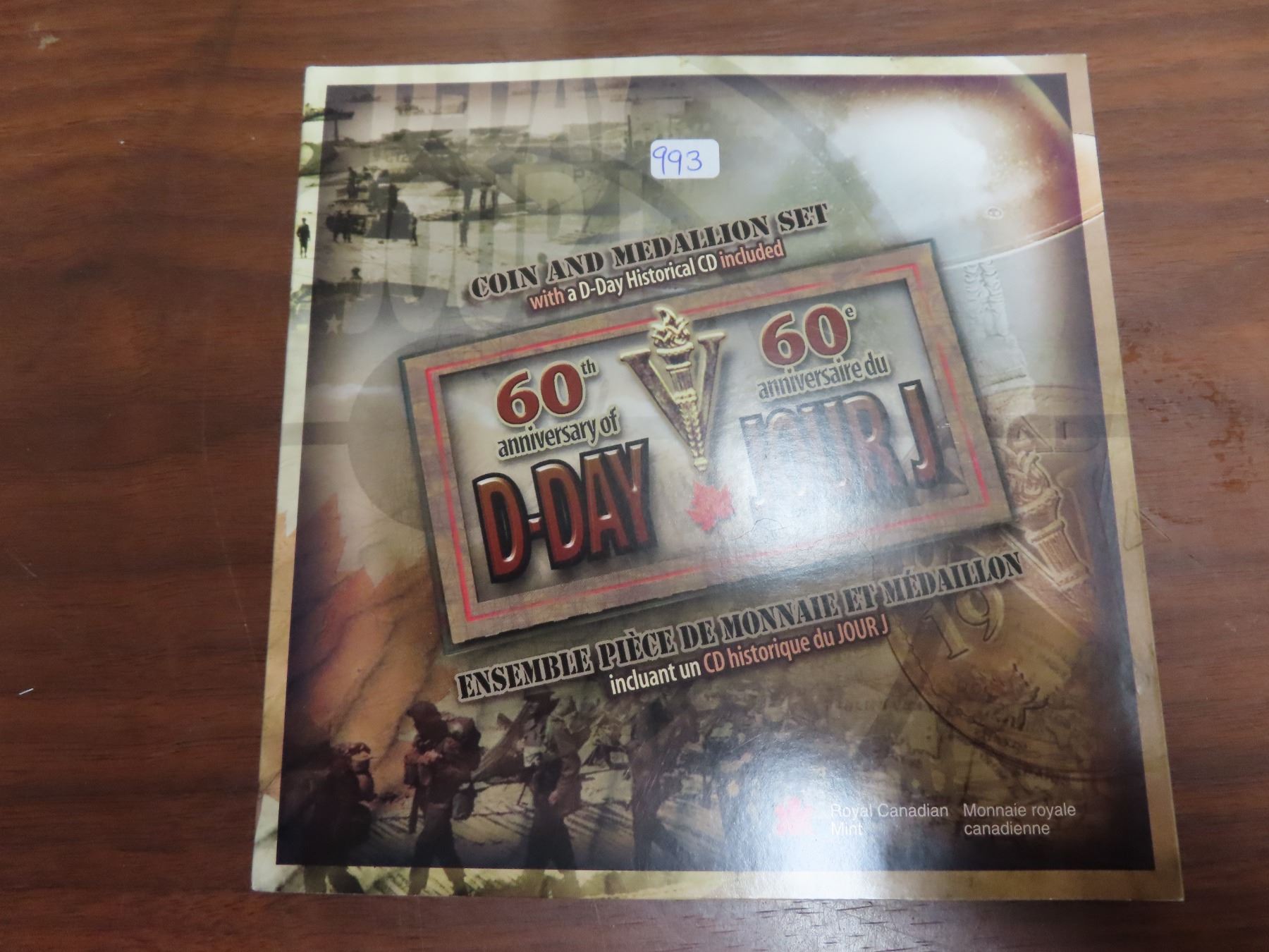 1944 – 2004 60th Anniversary of D-Day Coin & Medallion Set. Includes D-Day Historical CD. Sterling Silver Proof with Ultra Heavy Cameo. Housed in its original Royal Canadian Mint folder of issue.