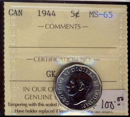 1944 5¢ ICCS MS65