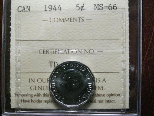 1944 5¢ ICCS MS66. A gem issue absolutely flawless.