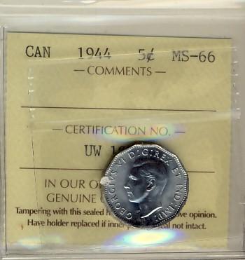 1944 5¢ ICCS MS66.