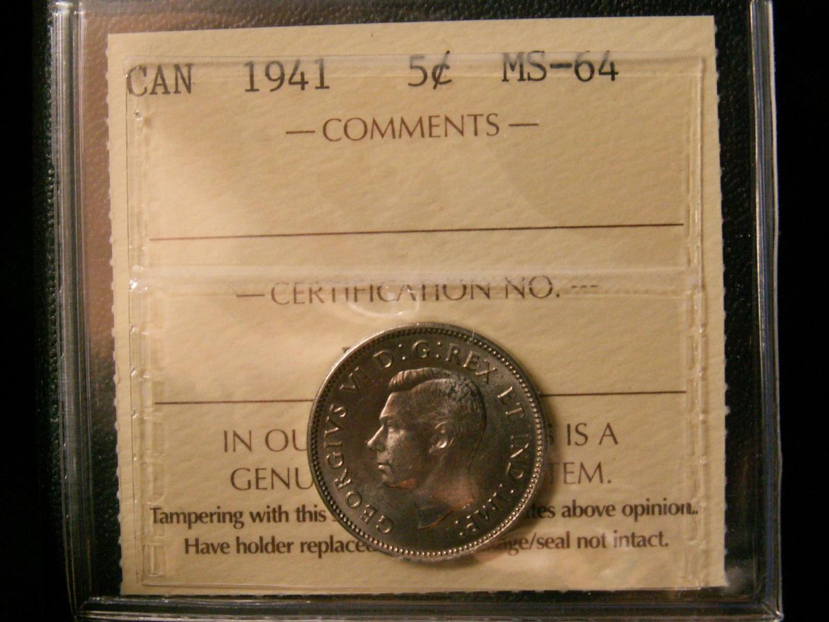 1944 5¢ MS64 (3) & MS65 (2). . Lot of 5 ICCS graded coins.