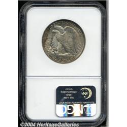 <B>1944<50C> MS66 NGC.</B></I> Nicely struck, with fairly good definition on the thumb of Liberty's left hand as well as on most of the head. A touch of softness is seen on the eagle's left leg. The lustrous, well preserved surfaces are dappled with olive, gold, and russet patina. <BR><BR><B>Important notice:</B> Heritage usually auctions material at the rate of 200-250 lots per hour. On some occasions eBay Live bid software or the Internet may not be able to keep up with the pace of the auction. We recommend placing a realistic absentee bid now as insurance to avoid disappointment. Occasionally the auctioneer may eliminate or reject an eBay Live bid, and the auctioneer may also reopen a lot after the close of the eBay live bidding (usually because we missed an audience bid), and may reject your bid even if it shows you as the winning bidder. By bidding via eBay Live, you agree that Heritage may award the lot to another bidder at its sole discretion under the circumstances described above or any other reasonable circumstances. Since eBay bids are not shown to us until we open the lot on the floor, we treat those bids just like floor bids. In most cases the floor responds before the eBay bid is presented to us, due to Internet lag time, so for consistency we have made it a policy that floor bids are always considered first over tie eBay live bids. Also please note that all Heritage lots purchased through eBay Live carry a 20% Buyer's Premium. Please make sure you read the Terms and Conditions before you bid. </span></font></tr></table></td></tr></table>