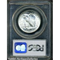 <B>1944<50C> MS66 PCGS.</B></I> Brilliant, this Walker shows the above average luster and surface preservation that one would expect from a coin of its caliber. <BR><BR><B>Important notice:</B> Heritage usually auctions material at the rate of 200-250 lots per hour. On some occasions eBay Live bid software or the Internet may not be able to keep up with the pace of the auction. We recommend placing a realistic absentee bid now as insurance to avoid disappointment. Occasionally the auctioneer may eliminate or reject an eBay Live bid, and the auctioneer may also reopen a lot after the close of the eBay live bidding (usually because we missed an audience bid), and may reject your bid even if it shows you as the winning bidder. By bidding via eBay Live, you agree that Heritage may award the lot to another bidder at its sole discretion under the circumstances described above or any other reasonable circumstances. Since eBay bids are not shown to us until we open the lot on the floor, we treat those bids just like floor bids. In most cases the floor responds before the eBay bid is presented to us, due to Internet lag time, so for consistency we have made it a policy that floor bids are always considered first over tie eBay live bids. Also please note that all Heritage lots purchased through eBay Live carry a 20% Buyer's Premium. Please make sure you read the Terms and Conditions before you bid. </span></font></tr></table></td></tr></table>