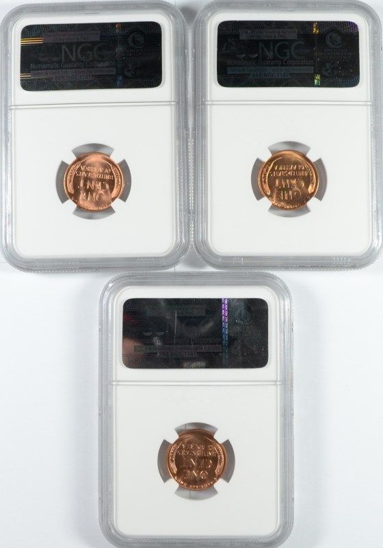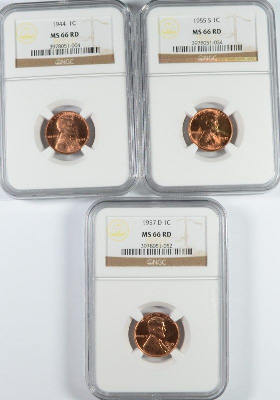 1944, 55-S AND 57-D LINCOLN CENTS, NGC MS-66 RED