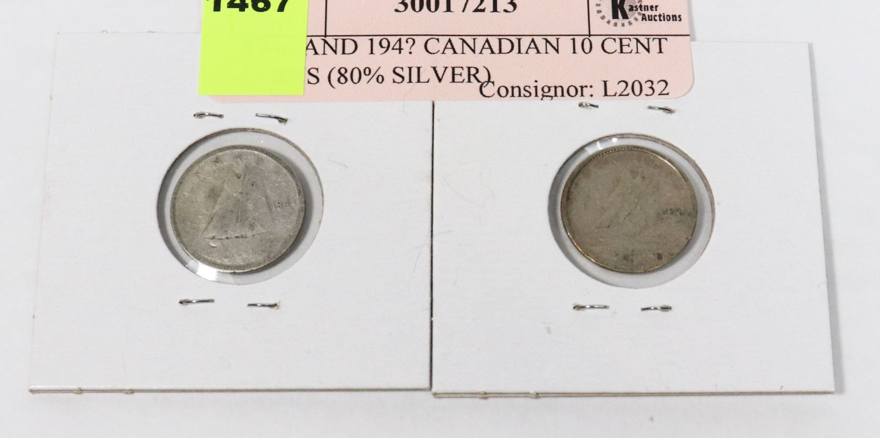 1944 AND 194? CANADIAN 10 CENT COINS (80% SILVER)