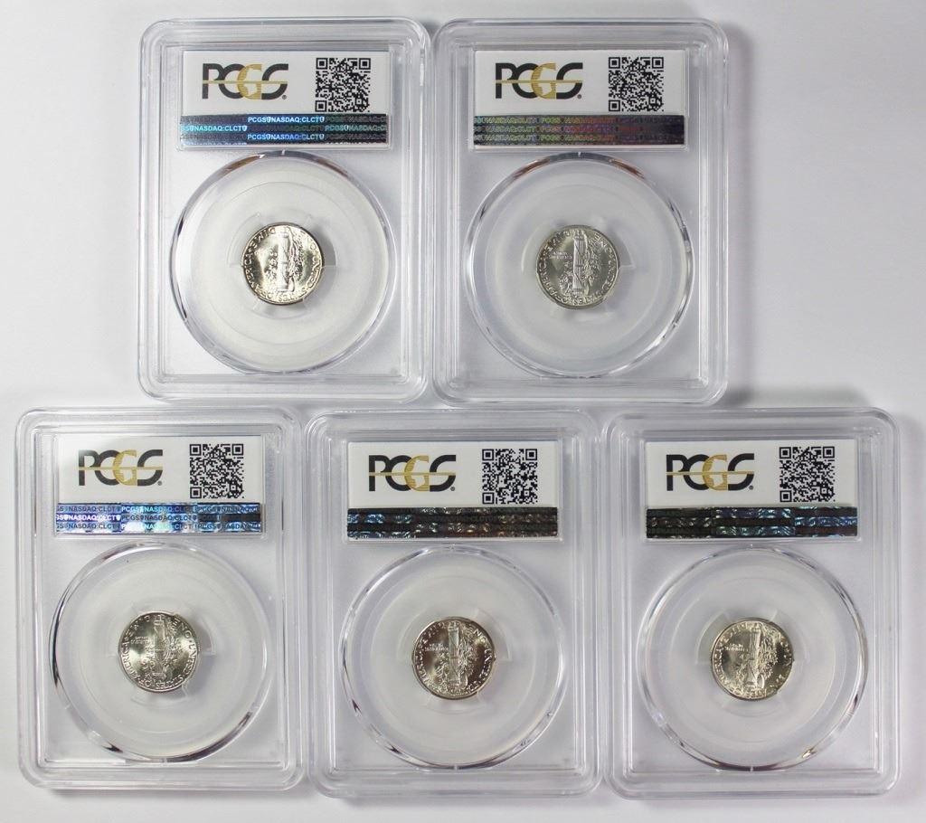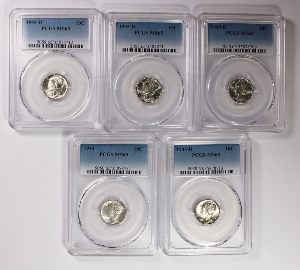 0NE 1944 AND FOUR 1945-D. ALL PCGS GRADED MS 65. ESTIMATE: $125-$150