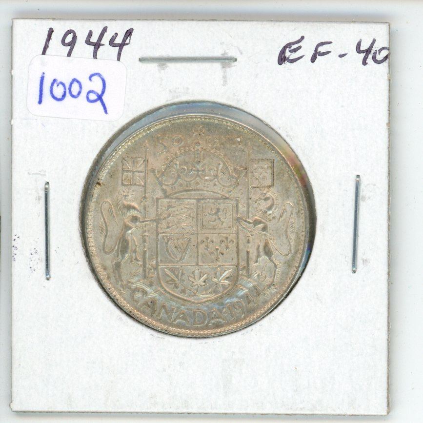 1944 Canadian Silver 50 Cents. World War II issue. EF-40.