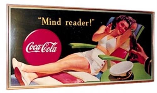 Framed under Plexi. 27"x56". Great graphics with bathing girl in lounge chair. A few minor surface rubs many of which would wipe off. Only very minor border marks or wear. Hard to beat this cond. at 8.7-9.1, being critical.