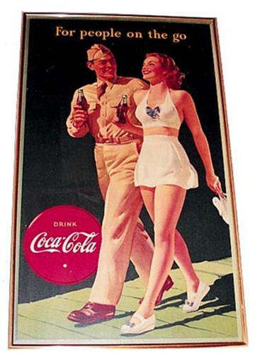 30"x50" Great subject and graphics with bathing girl and military guy. Nail hole bottom center border and both upper corners. Otherwise, absolutely beautiful with only light and minuscule tiny marks and a couple of surface rubs, barely worth mentioning. Framed under Plexiglas. If removed from frame I believe poster would wipe down nearly perfectly. Cond. 9.3-9.4+.