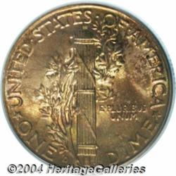 <table><tr><td><table><tr><td>1944-D 10C MS68 Full Bands PCGS. A moderate coating of rich, multicolored patina has accumulated over each side of this unmistakable Superb Gem. Mark and abrasion-free with soft, satiny surfaces and a razor-sharp strike. Unsurpassable quality. Population: 43 in 68, 0 finer (2/04). <BR><BR><B>Important notice:</B> Heritage usually auctions material at the rate of 200-250 lots per hour. On some occasions eBay Live bid software or the Internet may not be able to keep up with the pace of the auction. We recommend placing a realistic absentee bid now as insurance to avoid disappointment. Occasionally the auctioneer may eliminate or reject an eBay Live bid, and the auctioneer may also reopen a lot after the close of the eBay live bidding (usually because we missed an audience bid), and may reject your bid even if it shows you as the winning bidder. By bidding via eBay Live, you agree that Heritage may award the lot to another bidder at its sole discretion under the circumstances described above or any other reasonable circumstances. Since eBay bids are not shown to us until we open the lot on the floor, we treat those bids just like floor bids. In most cases the floor responds before the eBay bid is presented to us, due to Internet lag time, so for consistency we have made it a policy that floor bids are always considered first over tie eBay live bids. Also please note that all Heritage lots purchased through eBay Live carry a 20% Buyer's Premium. Please make sure you read the Terms and Conditions before you bid. <BR><BR><B>IMPORTANT ANNOUNCEMENT ABOUT RESERVES:</B> Heritage now divulges all reserves on its web site 7 days before every auction. If you want to know whether the reserve on this lot has been met, and if not, what the reserve amount is, please visit this lot page on the HeritageCoin.com web site, or email: bid@HeritageGalleries.com </span></font></td></tr></table></td></tr></table>