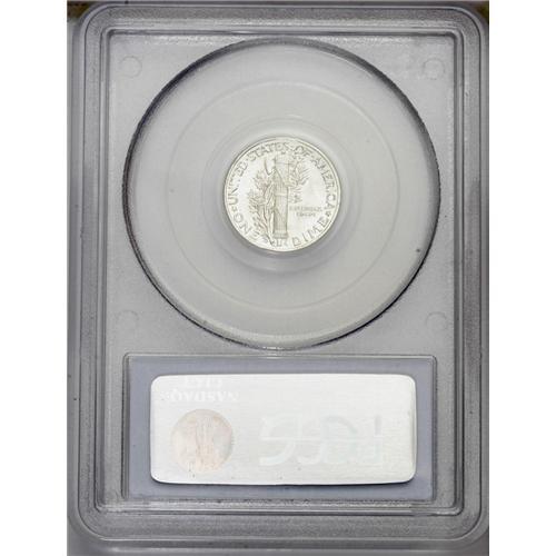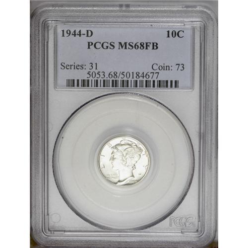 <B>1944-D<10C> MS68 Full Bands PCGS.</B></I> Brilliant and untoned, seemingly a first strike from new dies on both sides due to the depth of mint frost and the lack of "die burn." The strike is crisp and nearly unimprovable, save for a touch of softness on the lower diagonal. Population: 67 in 68, 0 finer (4/06).