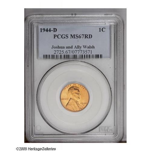 1944-D 1C MS67 Red PCGS. Radiant apricot-red color ill 1944-D[1C] MS67 Red PCGS.