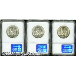 <B>1944-D 50C MS66 NGC,</B></I> three pieces, all are well defined with virtually no marks, one piece exhibits a little golden patina, the other two are brilliant. 3 coins Lot:8149