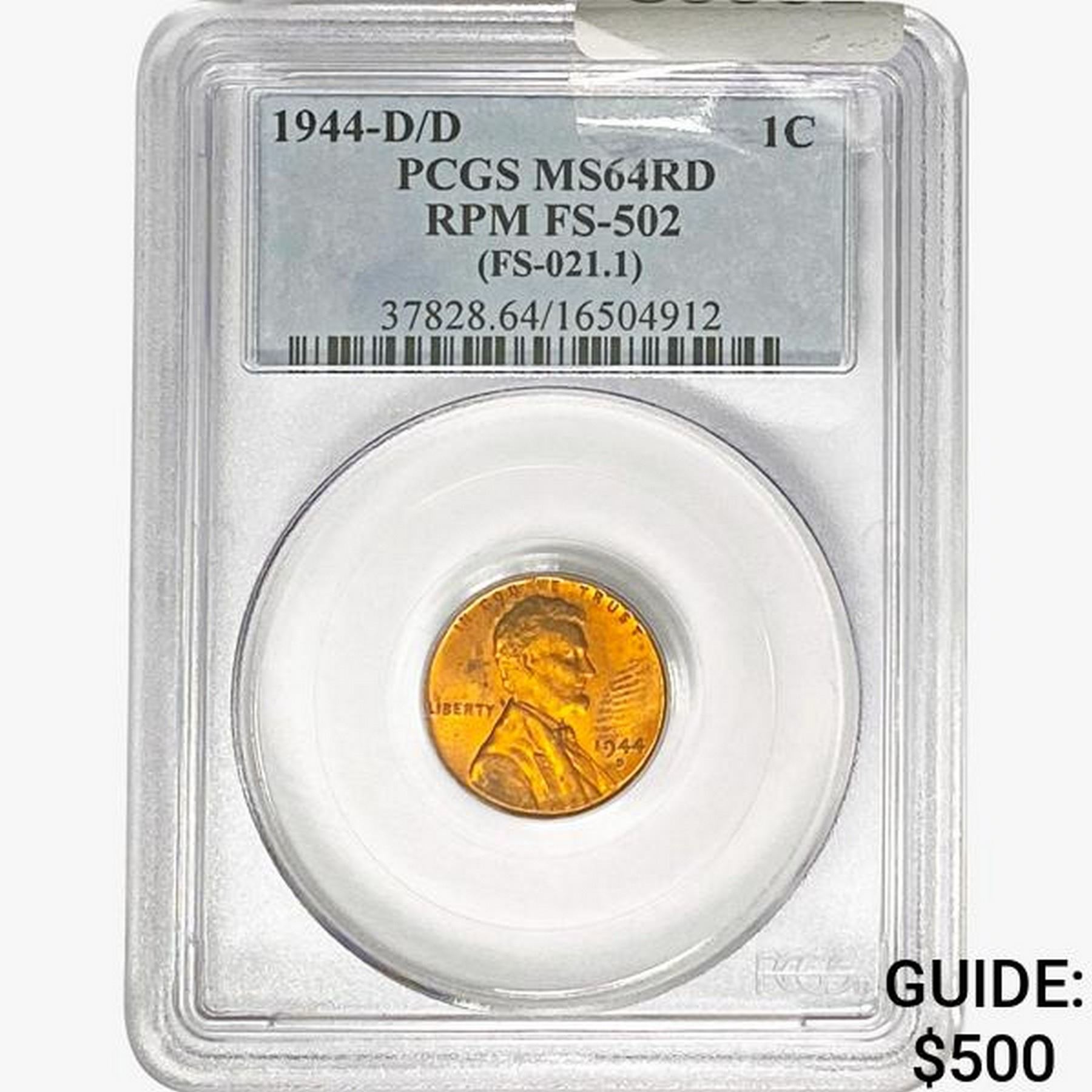 1944-D/D Wheat Cent PCGS MS64 RD,RPM,FS-501