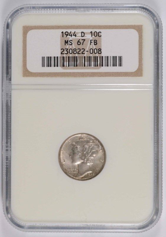 1944-D MERCURY DIME, NGC MS-67 FULL BANDS, CHERRY!