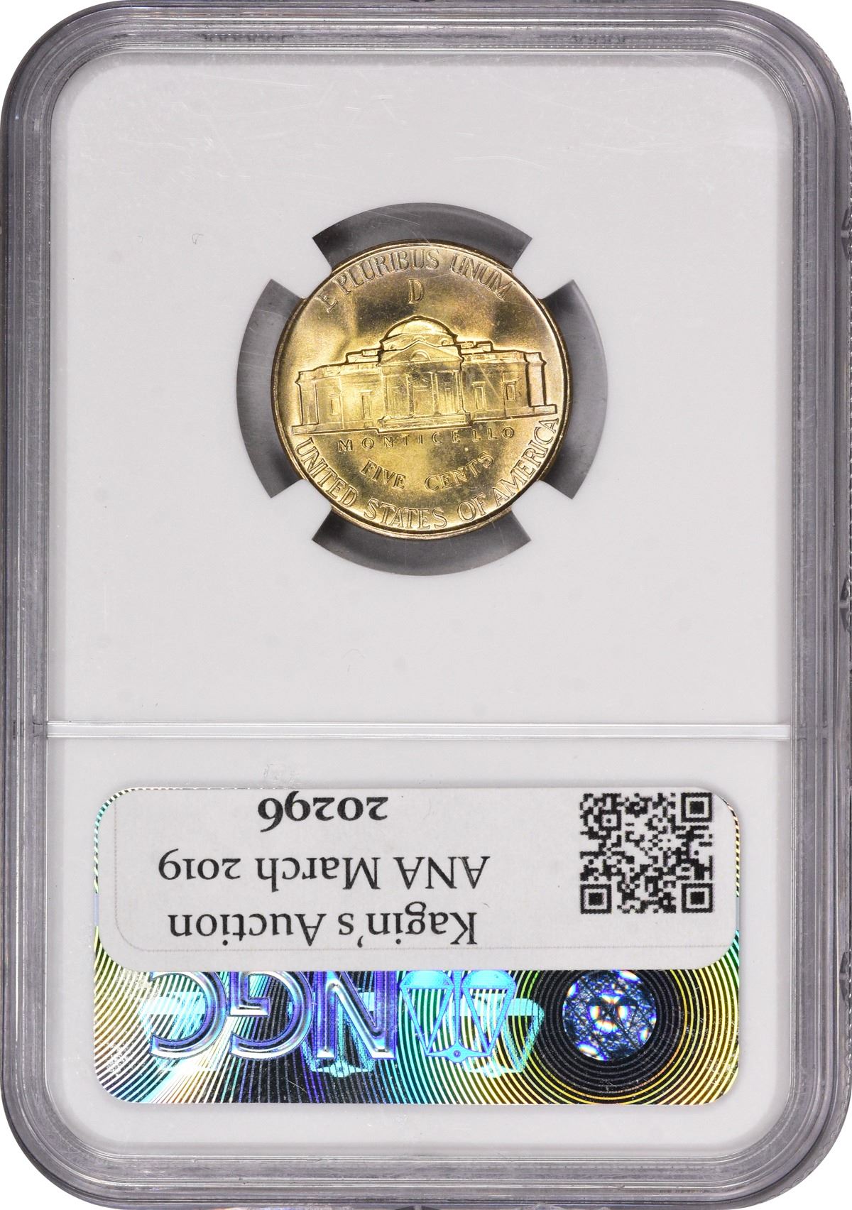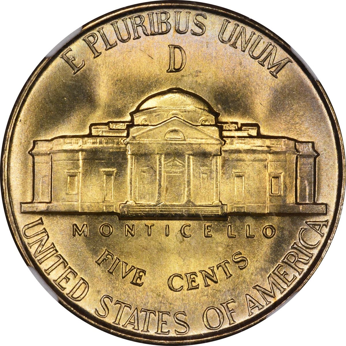 Fully lustrous with near-blinding cartwheel activity and pale champagne-gold toning throughout. Absolutely one of the finest 35% silver War nickels of any date we have seen in recent memory. Indeed, only a half dozen other 1944-D nickels have received a comparable grade from NGC, and there are no finer examples in that firm’s Census! Mid-20th Century coinage has come of age of late, and the respect for and value of high-grade examples in all the classic series of that era have taken their due course upward. This one won’t come easy, bidders!