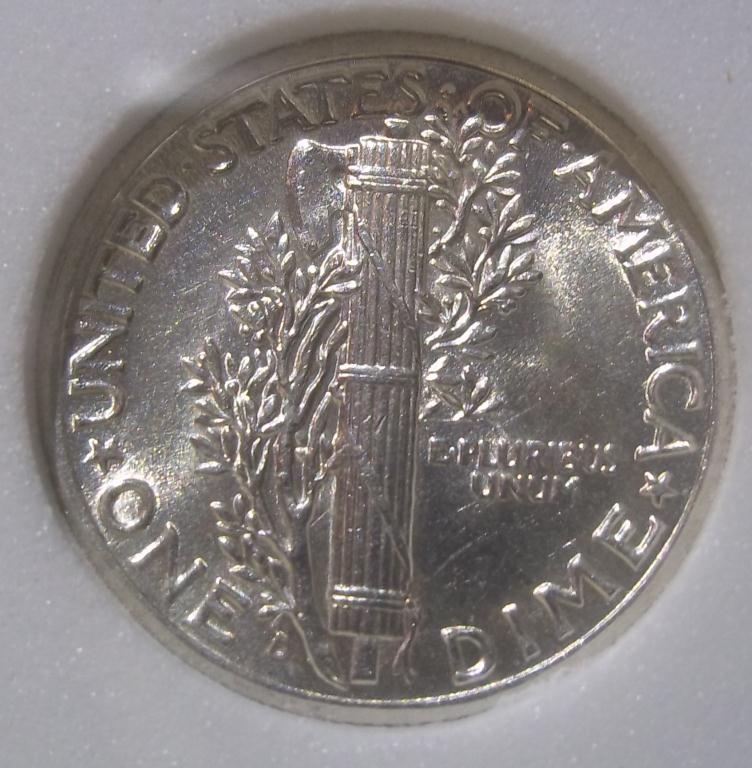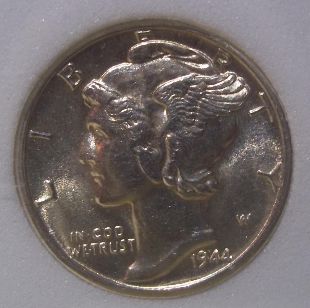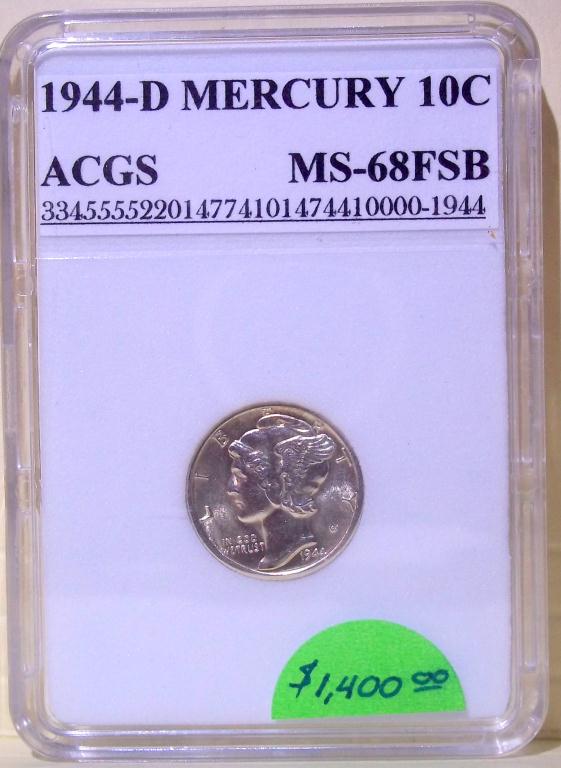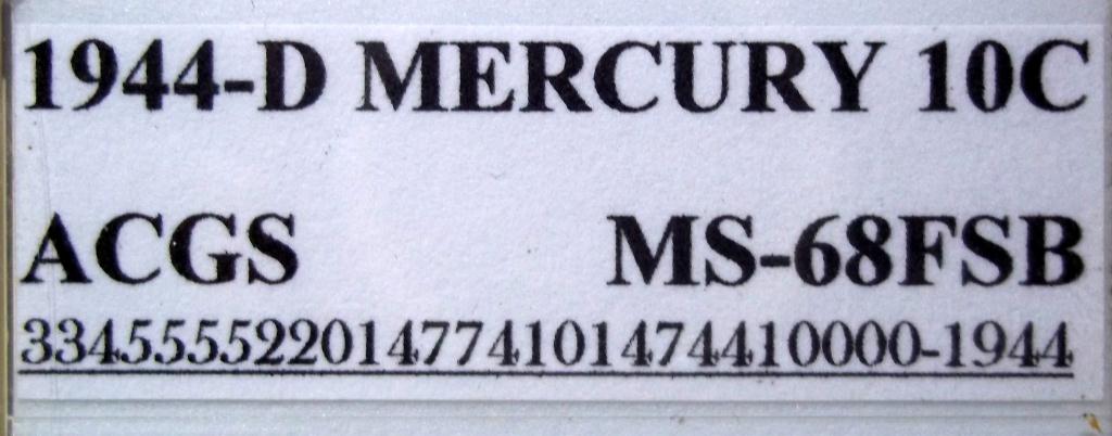 1944 Denver Mint Mercury Dime, certified and graded Mint State 68 Full Split Bands by ACGS! Only the first strike coins have the coveted Full Split Bands reverse, and they sell for many times the price of more common